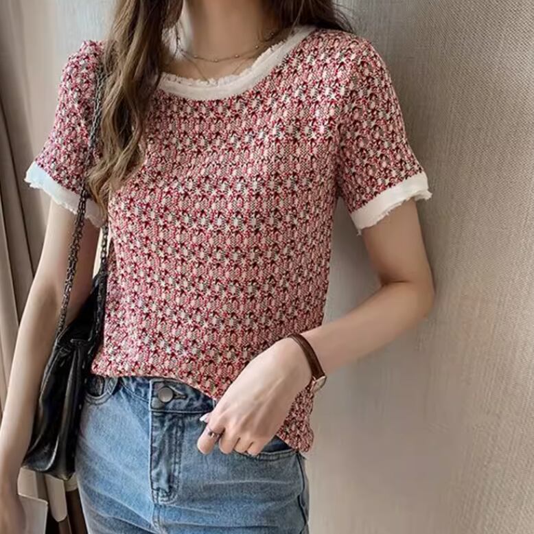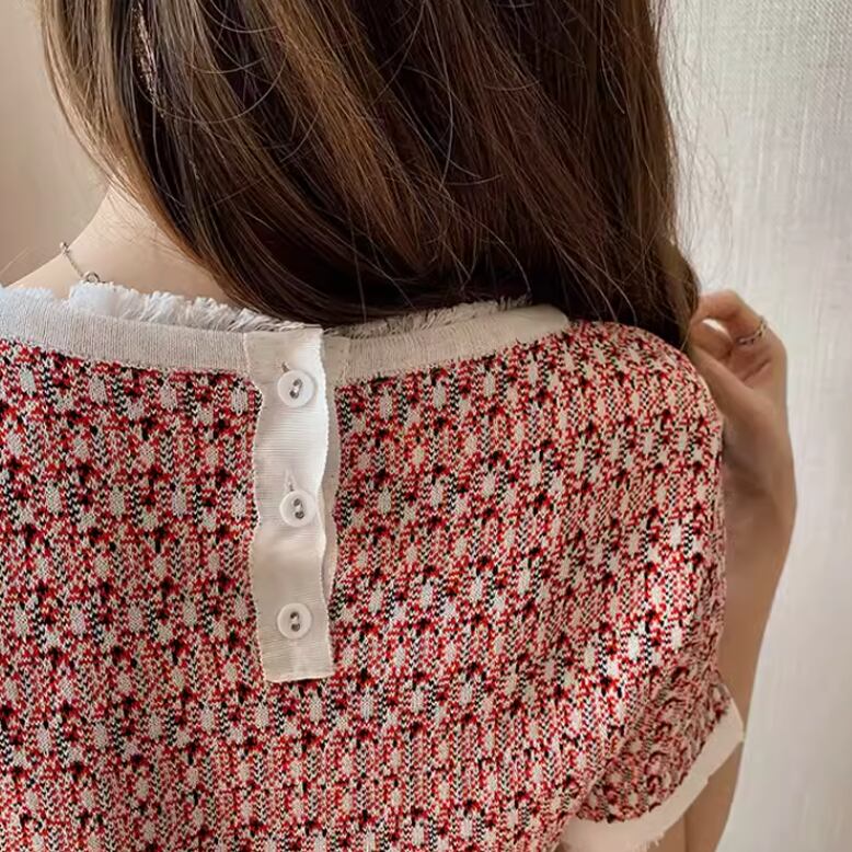 レディース トップス プルオーバー サマーセーター サマーニット 半袖 ラウンドネック 襟なし ノーカラー 伸縮性 ボタン 薄手 かわいい 大人可愛い きれいめ シンプル カジュアル 上品 おしゃれ かっこいい レトロ アジアン こなれ感 ラフ 個性的 クール 主役級 存在感 とろみ感 抜け感 ラブリー キュート 都会的 ベーシック ロマンティック ナチュラル 総柄 夏 デート お出かけ リゾート 旅行 公園 女子会 休日 バカンス ショッピング カフェ コーデ 普段使い 着回し モテ ゆる レッド