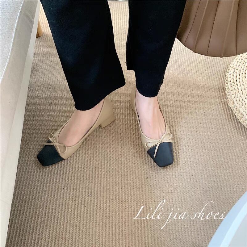 大人可愛いリボン付きスクエアトゥのレディースパンプス。4cmのミドルヒールが歩きやすく、足元を華やかに彩ります。シンプルで上品なデザインはビジネスからデートまで幅広く活躍。季節やシーンを問わず、エレガントに輝く一足です。サイズは22.5cmから24.5cmまで揃い、ブラックとベージュのバイカラーで選べます。日常使いから特別な日まで、あなたのスタイルを格上げるアイテム。