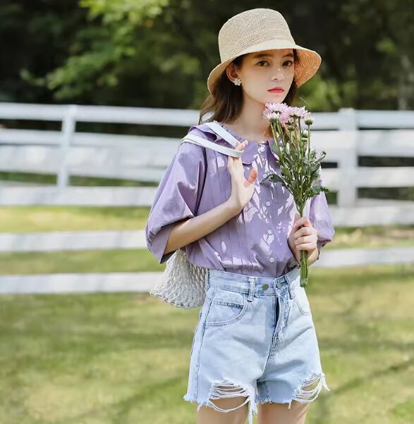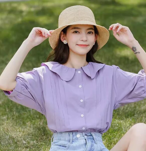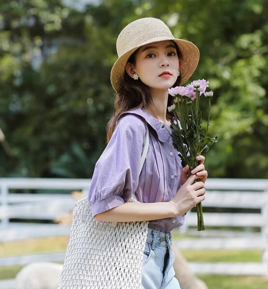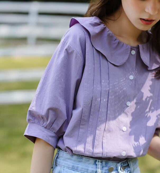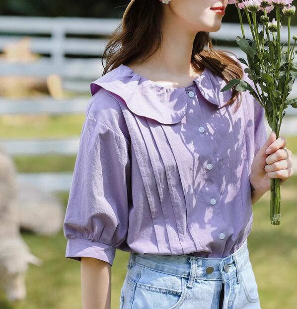レディース トップス シャツ ブラウス ミディアム丈 5分袖 ボリューム袖 ケープ襟 ストレート タック タックプリーツ シフォン 薄手 大人可愛い カジュアル 上品 おしゃれ ガーリー 個性的 エレガント モダン 存在感 ラブリー プリンセス ロマンティック 無地 夏 ママ OL 学生 デート お出かけ リゾート 旅行 女子会 休日 バカンス ガーデン ショッピング お花見 カフェ コーデ 普段使い 着回し 清楚 インスタ映え ホワイト パープル