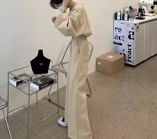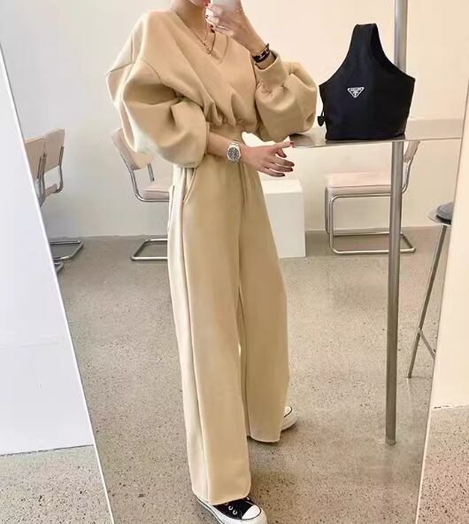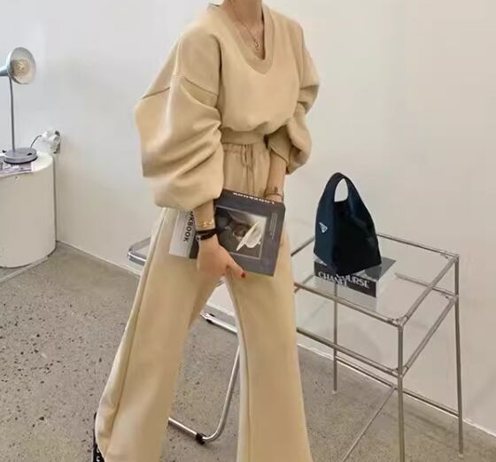 二点セット 上下セット ツーピース レディース プルオーバー スウェット ジャージ セットアップ スポーツウェア ワイドパンツ フルレングス 長袖 ドロップショルダー Vネック ベルベット シンプル カジュアル おしゃれ かっこいい こなれ感 ラフ ボーイッシュ スポーティー ルーズ クール ラグジュアリー シック スタイリッシュ 無地 秋 冬 10代 20代 学生 デート お出かけ 普段使い 着回し トレンド 流行 S M L XL ゆったり ゆる 大きめ オーバーサイズ アプリコット