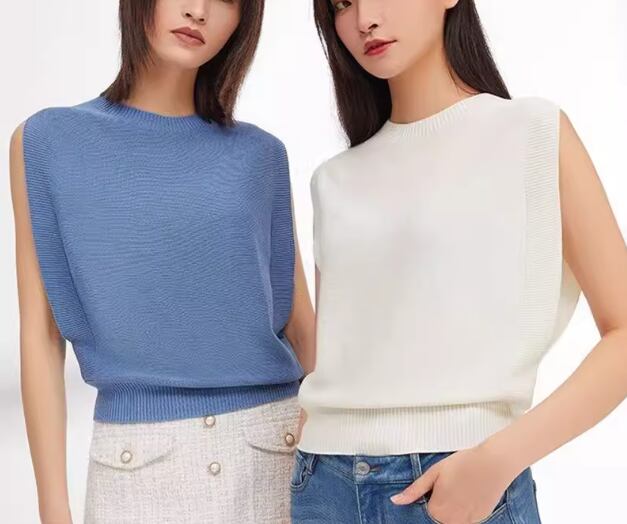 極上の着心地が魅力的な大人可愛いノースリーブのニットベスト。