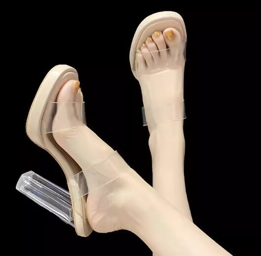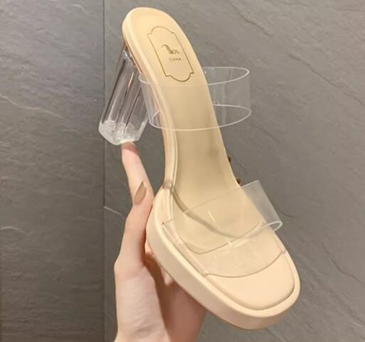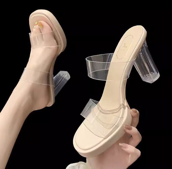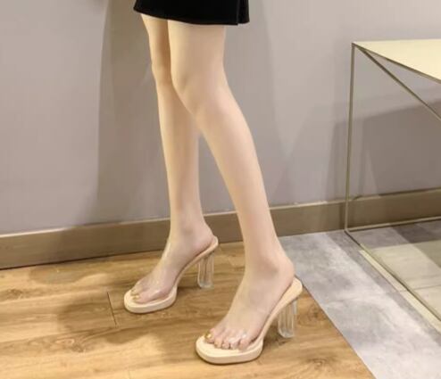 レディース サンダル ハイヒール 太ヒール クリアヒール ラバーソール 9㎝ 美脚 脚長 オープントゥ 大人可愛い きれいめ シンプル カジュアル おしゃれ かっこいい ラフ クール セクシー 抜け感 シック スタイリッシュ 夏 無地 デート お出かけ デイリー 普段使い トレンド 流行 22.5cm 23.0cm 23.5cm 24.0cm 22.0㎝ アプリコット 透明 クリア
