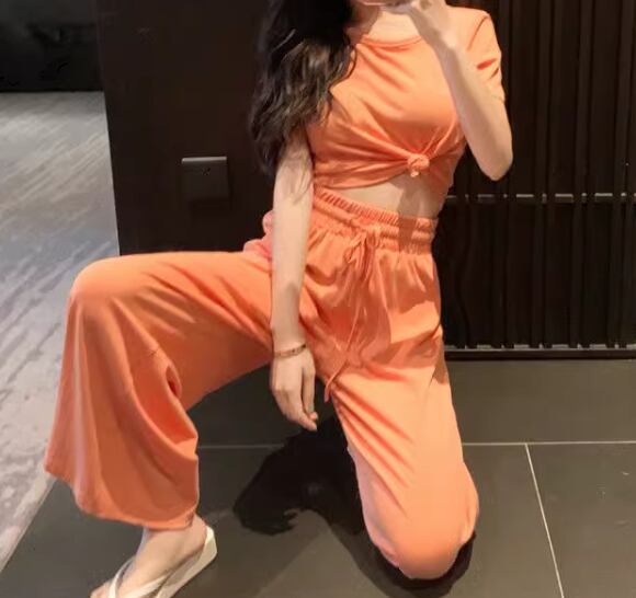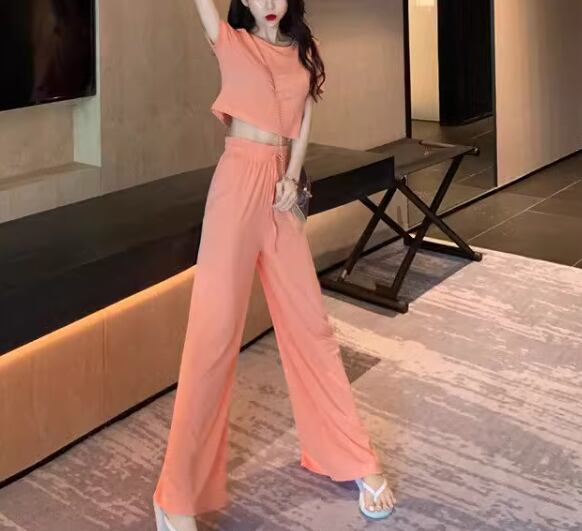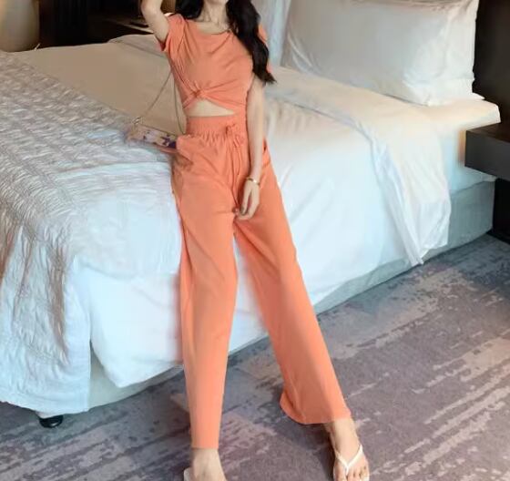 二点セット 上下セット ツーピース レディース トップス パンツ セットアップ ワイドパンツ Tシャツ フルレングス 半袖 ラウンドネック スリム 細身 ハイウエスト かわいい 大人可愛い きれいめ シンプル カジュアル おしゃれ こなれ感 ラフ ボーイッシュ ルーズ クール ラグジュアリー ナチュラル 爽やか ハンサム シック スタイリッシュ 涼しげ 無地 夏 デート お出かけ 普段使い 着回し トレンド 流行 S M L XL 小さめ ブラック グレー オレンジ