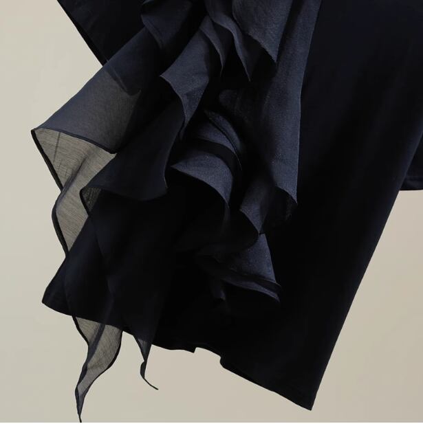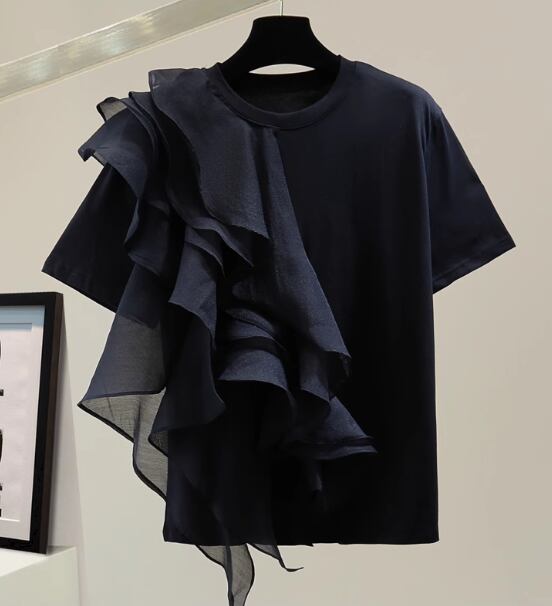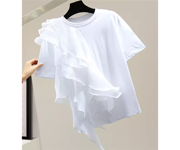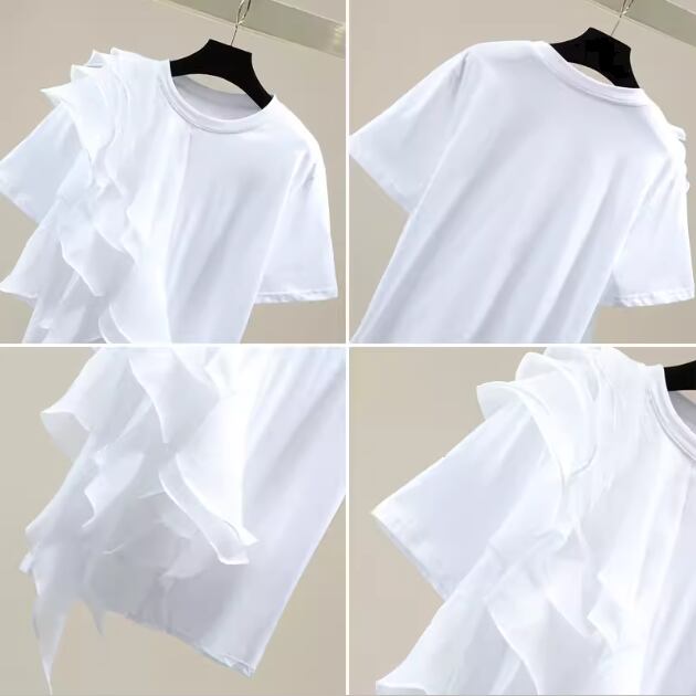 立体的なフリル装飾がおしゃれな半袖Tシャツ。