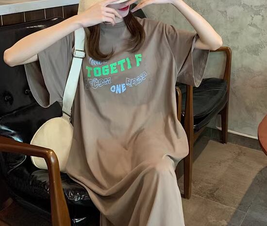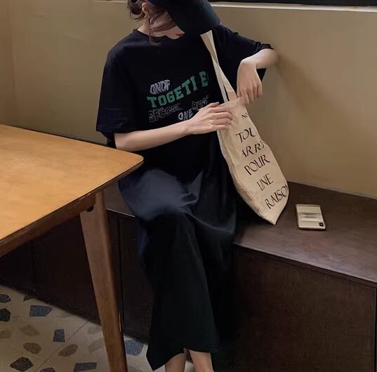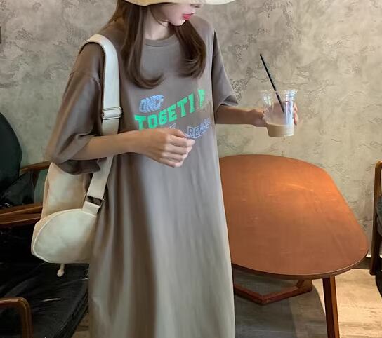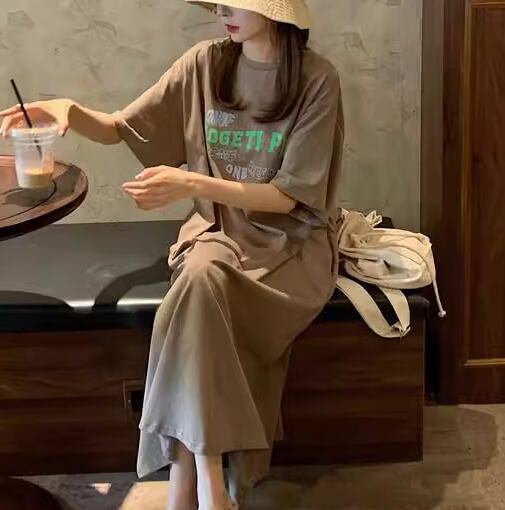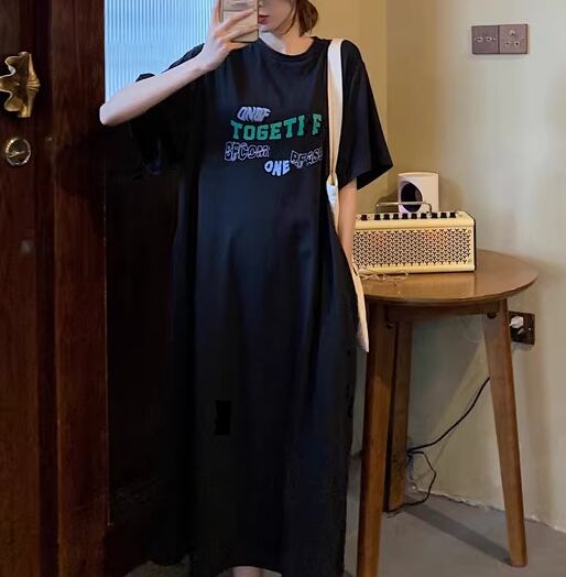 レディース ワンピース プルオーバー ロング 半袖 ラウンドネック コットン かわいい 大人可愛い シンプル カジュアル おしゃれ レトロ ラフ ルーズ クール ナチュラル リラックス シック 涼しげ プリント 夏 10代 20代 学生 デート お出かけ イベント 旅行 海 韓国 楽ちん 体型カバー 普段使い M L XL ゆったり ゆる 大きめ ブラック ブラウン