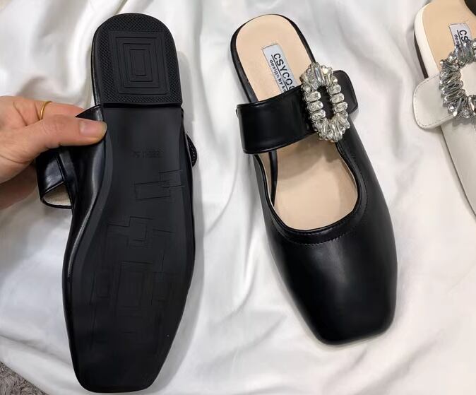 レディース サンダル ミュール 1cm ローヒール フラット ぺたんこ ラバーソール スクエアトゥ ベルト バックル ラインストーン 大人可愛い きれいめ カジュアル 上品 おしゃれ かっこいい エレガント ラフ クール セクシー モダン 存在感 こなれ感 抜け感 華やか シック スタイリッシュ 春 夏 無地 OL デート お出かけ デイリー 普段使い 高見え 22.5cm 23.0cm 23.5cm 24.0cm 24.5cm ブラック 大人デザイン オフホワイト