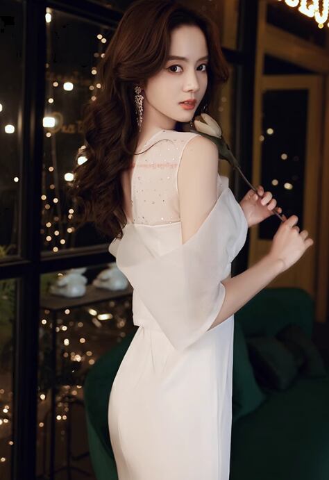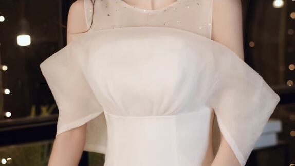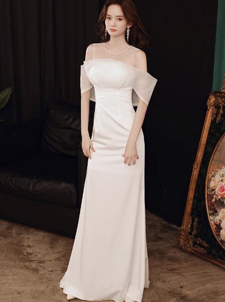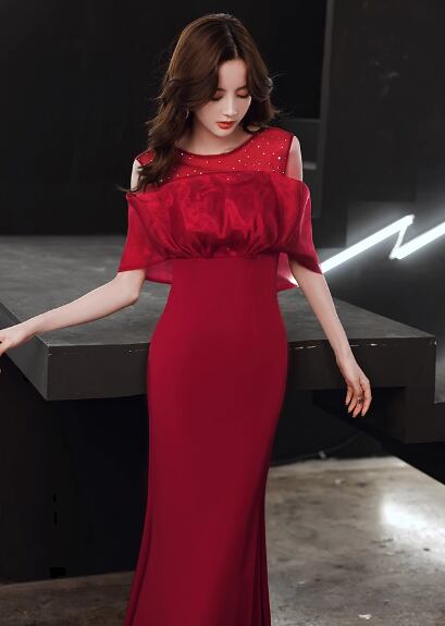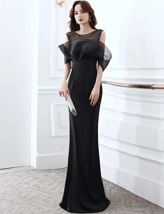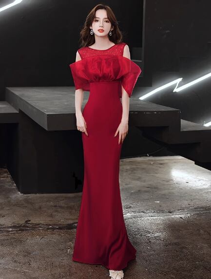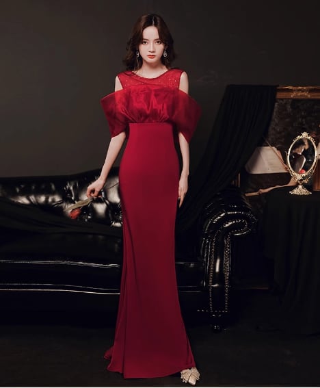 レディース ドレス ロング マキシ 袖なし ボリューム袖 パフスリーブ Uネック オフショルダー タイト スリム 細身 ストレート シフォン 透け感 上品 おしゃれ 豪華 セレブリティ 高級感 華やか 高貴 オールシーズン 結婚式 二次会 10代 20代 パーティー イベント S M L XL 2XL 白 黒 レッド