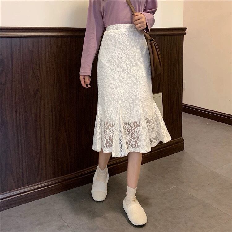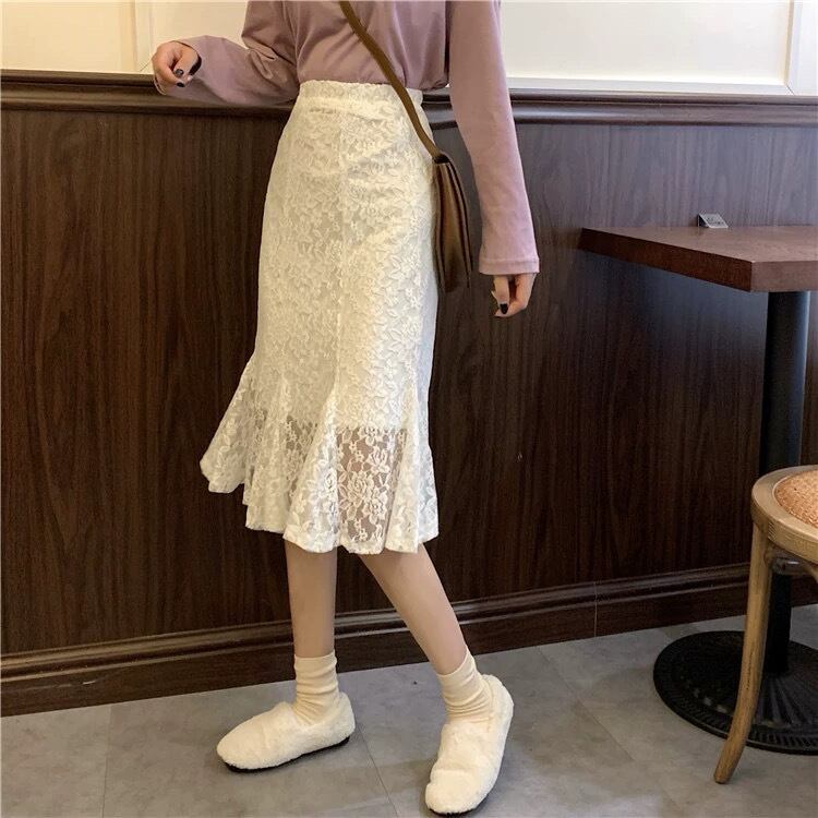 レディース スカート ボトムス マーメイドスカート ロングスカート レーススカート 膝丈 マーメイド フィッシュテール フェミニン レース ハイウエスト 透け感 大人可愛い きれいめ シンプル 上品 おしゃれ ガーリー エレガント キュート ロマンティック 花 フラワー 春 夏 デート お出かけ イベント 女子会 休日 ショッピング 韓国 オルチャン コーデ 普段使い 着回し モテ 清楚 スタイル デイリー S M L XL 2XL 3XL 4XL 5XL 大きいサイズ ビッグ 白 ホワイト 黒 ブラック