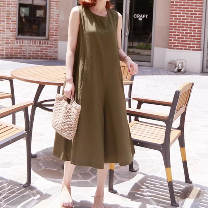 レディース パンツ ボトムス ワンピース プルオーバー ジャンプスーツ ミモレ 7分丈 袖なし ノースリーブ ラウンドネック 襟なし ノーカラー ワイド ポケット 薄手 リネン かわいい 大人可愛い きれいめ シンプル カジュアル 上品 おしゃれ かっこいい レトロ アジアン こなれ感 ラフ ルーズ 個性的 エレガント 主役級 存在感 とろみ感 抜け感 ラブリー キュート ベーシック ロマンティック デート お出かけ リゾート 女子会 休日 バカンス コーデ 楽ちん 体型カバー 普段使い ゆったり ゆる