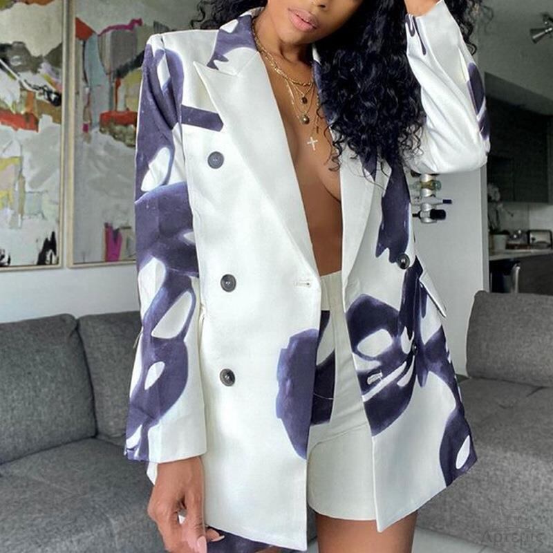 2点セット 上下セット セットアップ レディース ジャケット アウター 上着 テーラードジャケット 長袖 ドロップショルダー Vネック 襟付き オーバーサイズ 前開き ショートパンツ ボトムス 膝上 ショート ミディアム丈 ハイウエスト シンプル カジュアル おしゃれ かっこいい こなれ感 個性的 存在感 アート調 ペイント柄 春 秋 女の子 学生 学校 通学 お出かけ イベント リゾート 休日 韓国 オルチャン コーデ 体型カバー 脚長 普段使い 着回し インスタ映え S M L XL 白 ホワイト