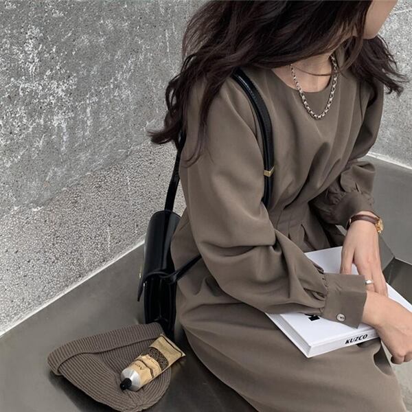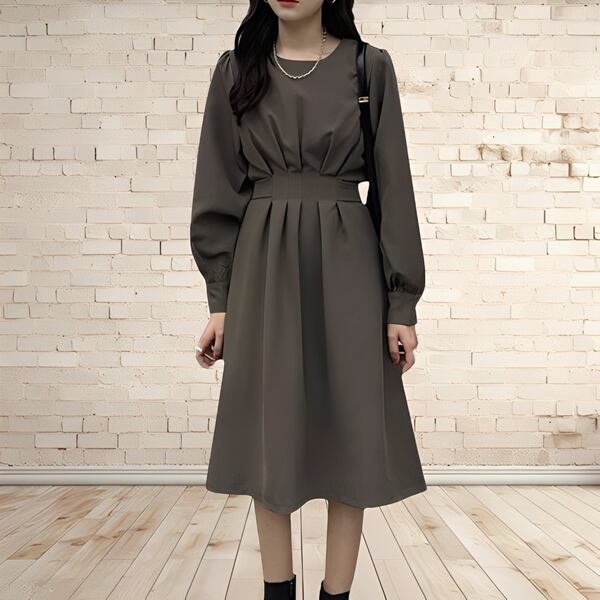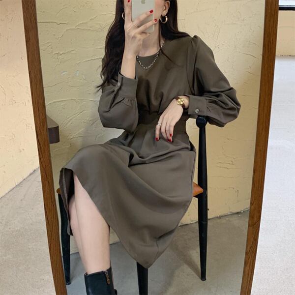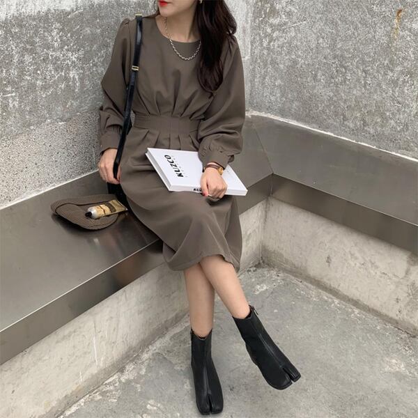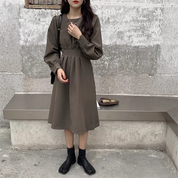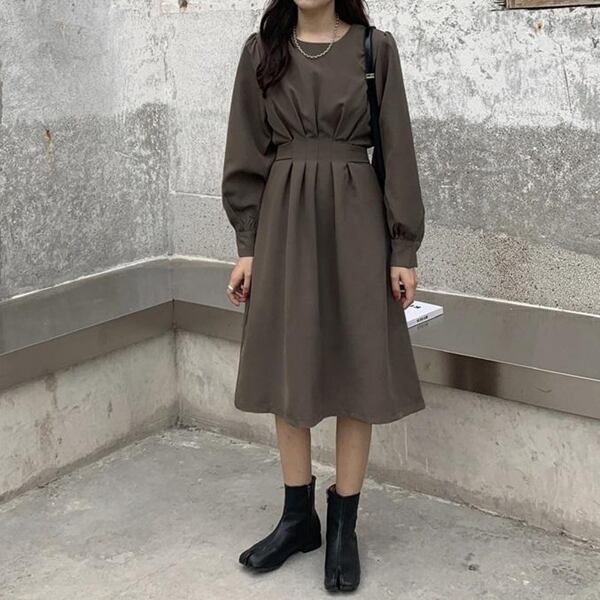 レディース ワンピース ロングワンピース 膝下 ミモレ ミモレ丈 ラウンドネック ボリューム袖 長そで 長袖 ハイウエスト プルオーバー Aライン ギャザー ウエストギャザー 切り替えデザイン フレアスカート カジュアル 大人カジュアル モード系 シック きれいめ キレイめ 清楚 キュート エレガント おしゃれ オシャレ 無地 お洒落 春夏 春 夏 ママ 20代 30代 40代 デート お出かけ 普段使い 韓国 トレンド かわいい 可愛い 大人かわいい 休日 オフ 通学 通勤 仕事 オフィスカジュアル