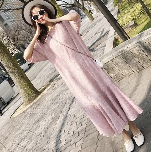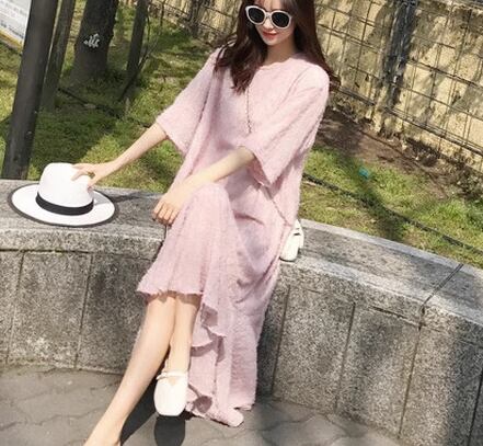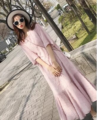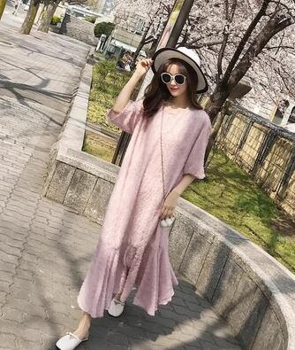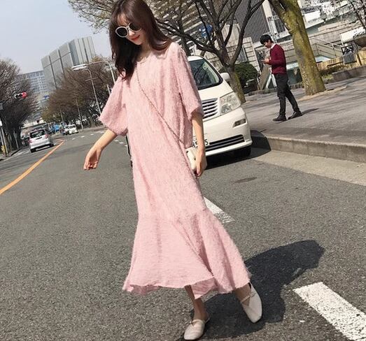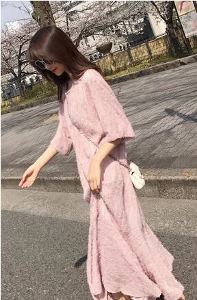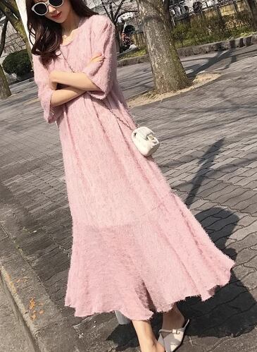 レディース ワンピース プルオーバー ロング 半袖 ラウンドネック Aライン フィッシュテール フェミニン ウエストゴム かわいい 大人可愛い きれいめ カジュアル 上品 おしゃれ レトロ ガーリー 存在感 キュート ナチュラル シック 高級感 華やか 優しい 穏やか 柔らかい 夏 10代 20代 学生 デート お出かけ 韓国 普段使い 清楚 S M L ピンク