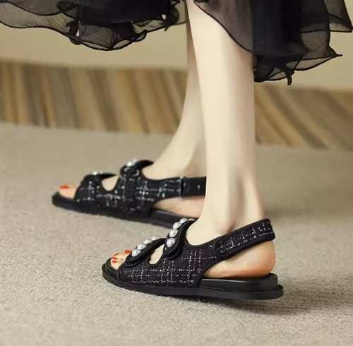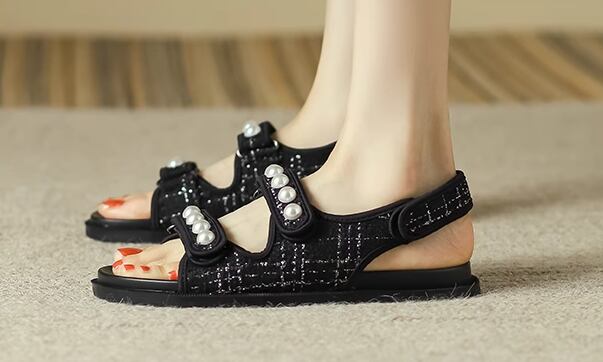 ブラック×ホワイトのモノトーンカラーが大人可愛いカジュアルサンダル。