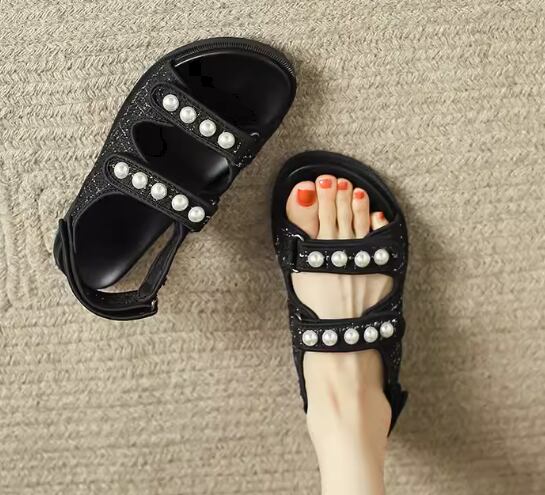 レディース サンダル 3cm ローヒール フラット ラバーソール ストラップ付き ビーズ 滑り止め レザー かわいい 大人可愛い きれいめ シンプル カジュアル 上品 おしゃれ かっこいい レトロ エレガント スポーティー ボーイッシュ ラフ クール セクシー モダン 存在感 こなれ感 抜け感 華やか シック スタイリッシュ 夏 無地 デート お出かけ 旅行 海 デイリー 普段使い 22.5cm 23.0cm 23.5cm 24.0cm 24.5cm ブラック