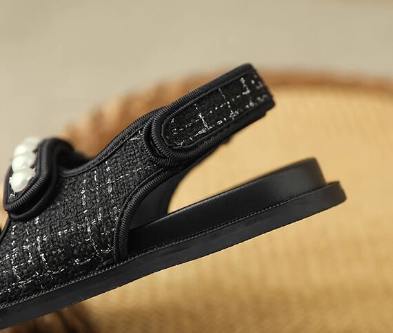 フラットヒールの高さは3センチと低めで、ストラップも付いているので歩きやすく疲れにくいのがうれしいポイント。