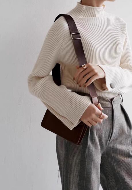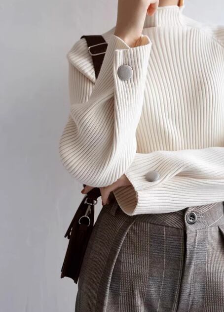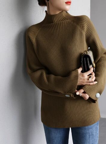 ハイネックプルオーバーは、シンプルで上品なデザインが特徴のニットセーターです。