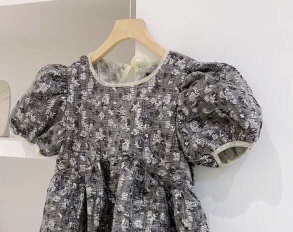 上品で可愛らしい小花柄が魅力的な半袖のショート丈ドレス。