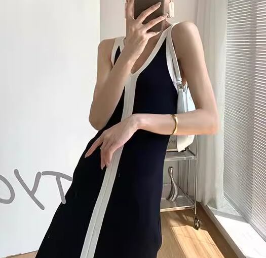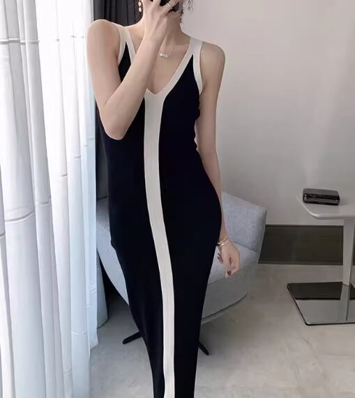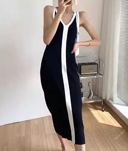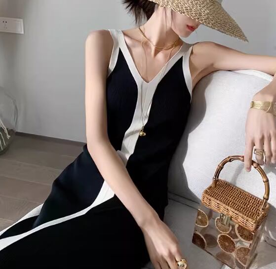 レディース プルオーバー ドレス ロング マキシ 袖なし ノースリーブ Vネック スリム 細身 Iライン ハイウエスト 大人可愛い きれいめ シンプル カジュアル 上品 おしゃれ かっこいい こなれ感 クール モード系 エレガント ラグジュアリー ナチュラル セクシー ハンサム シック 高級感 スタイリッシュ 無地 夏 デート お出かけ パーティー イベント 普段使い S M L 小さめ ブラック のトーン