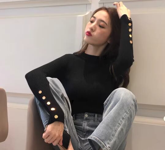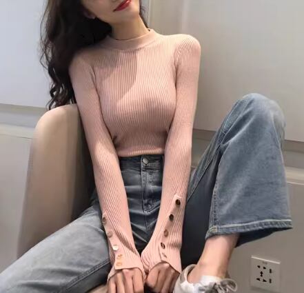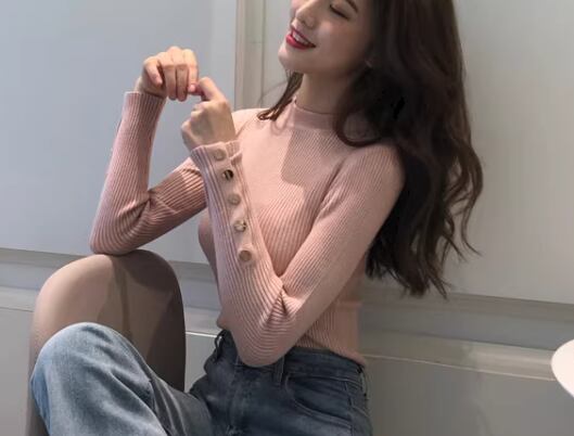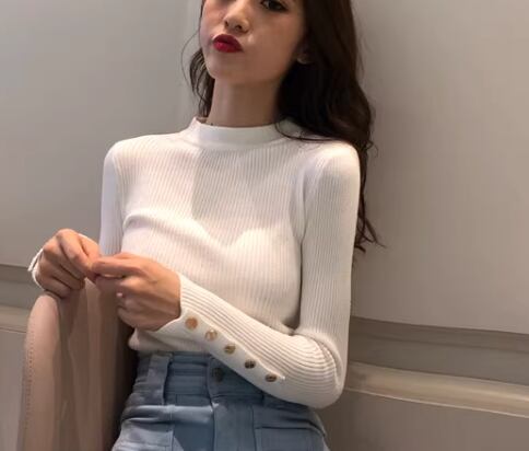 レディース トップス ニット セーター プルオーバー ショート ミドル丈 長袖 ハイネック タイト スリム 細身 ボタン ストレッチ 伸縮性 大人可愛い きれいめ シンプル カジュアル 上品 おしゃれ こなれ感 クール エレガント ナチュラル セクシー シック 高級感 スタイリッシュ 無地 春 秋 デート お出かけ 普段使い 着回し モテ S M L ホワイト ブラック ピンク ブルー レッド