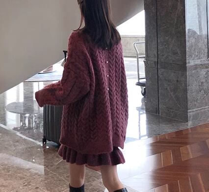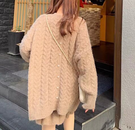 シックなカラーが大人可愛い、厚手ニットのセットアップ。