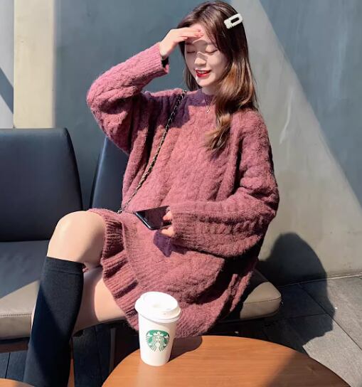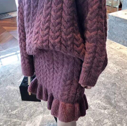 二点セット 上下セット ツーピース レディース スカート ニット セーター プルオーバー セットアップ ショートスカート ニットスカート ミニスカート 長袖 ラウンドネック クルーネック プリーツ 厚手 ケーブルニット かわいい 大人可愛い シンプル カジュアル おしゃれ ガーリー ルーズ キュート ラグジュアリー セクシー シック 高級感 秋 冬 10代 20代 学生 デート お出かけ 韓国 普段使い 着回し モテ トレンド 流行 フリーサイズ カーキ パープル