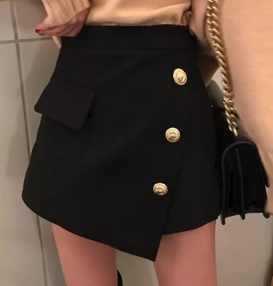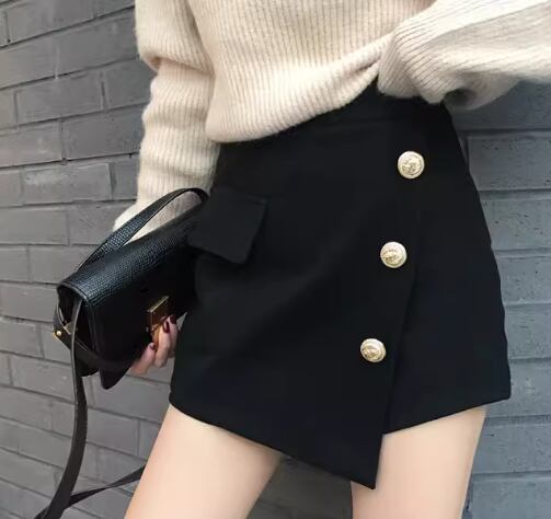 スカート風 レディース パンツ ボトムス ショートパンツ 左右非対称 不規則 スリム ストレート Aライン ハイウエスト 厚手 大人可愛い きれいめ シンプル カジュアル 上品 おしゃれ かっこいい クール エレガント ラグジュアリー シック 高級感 スタイリッシュ 無地 秋 冬 10代 20代 学生 デート お出かけ 韓国 脚長 普段使い 着回し トレンド 流行 S M L XL 小さめ ブラック グレー