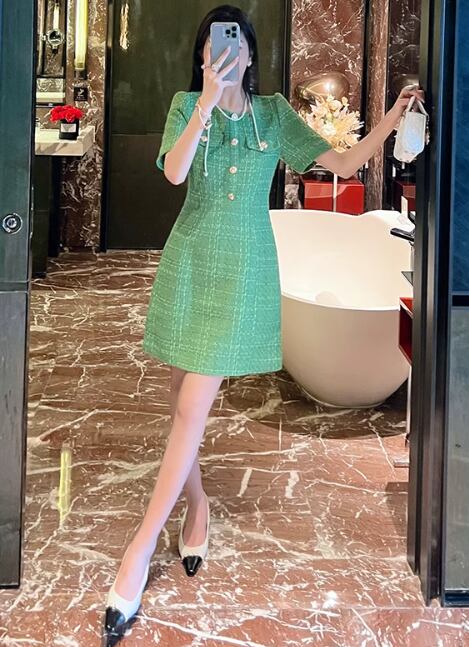 レディース ドレス ミニ ショート 半袖 ラメ感 スリム 細身 ストレート フェミニン コンサバ ヴィンテージ かわいい 大人可愛い 上品 おしゃれ レトロ エキゾチック 主役級 存在感 かっちり ヴィンテージ 都会的 豪華 派手 ポップ 高級感 オールシーズン 二次会 披露宴 シーズンレス 20代 30代 パーティー イベント モテ S M L XL 緑 グリーン