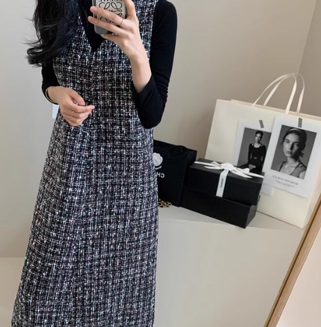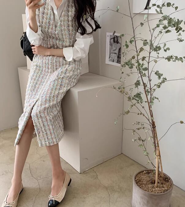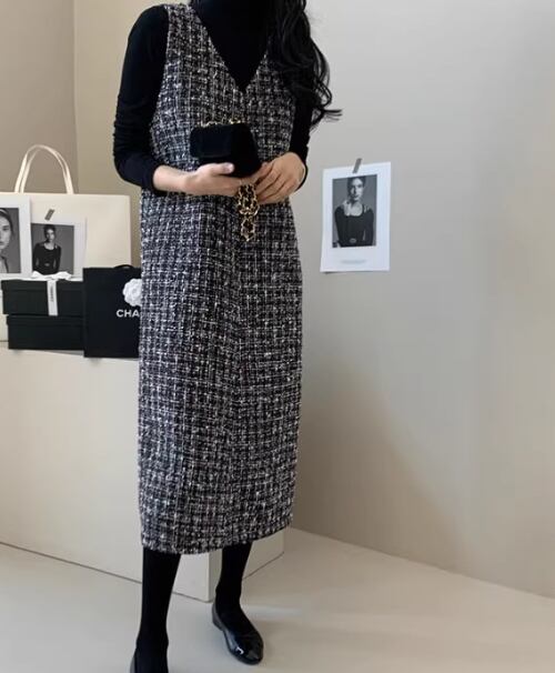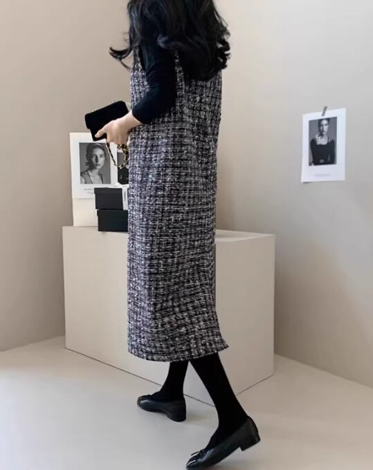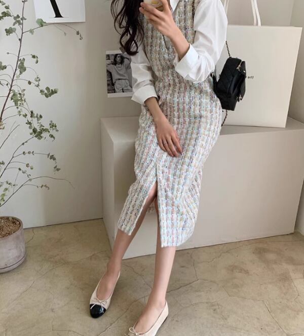 レディース オールインワン タイトスカート 膝下 ミモレ 7分丈 8分丈 9分丈 スリム ストレート ツイード 中厚手 かわいい 大人可愛い きれいめ シンプル カジュアル おしゃれ こなれ感 ラブリー キュート 清潔感 秋 冬 学生 学校 デート お出かけ 女子会 休日 合コン 重ね着 韓国 オルチャン 体型カバー 白 黒