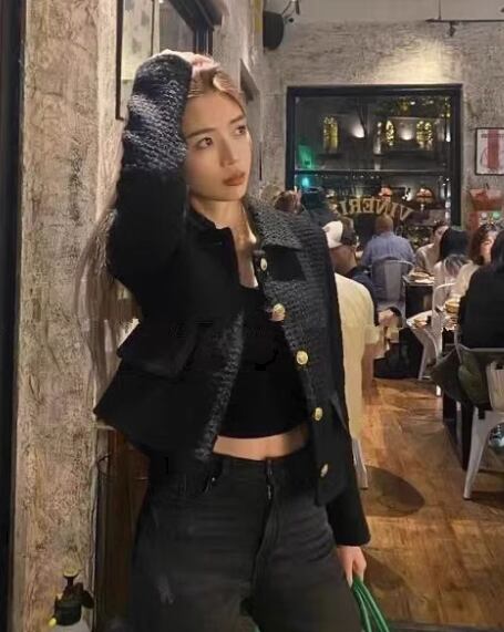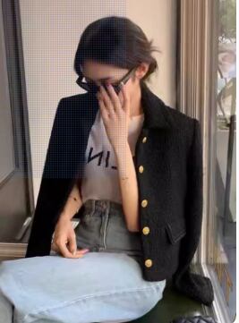 エレガントなショートジャケットが新登場!襟付きで上品な印象を与えるデザインは、オフィスやお出かけにぴったり。ポケットやボタン、ツイード素材がアクセントとなり、大人可愛い雰囲気を演出します。季節に合わせて、春秋に活躍する一枚です。
