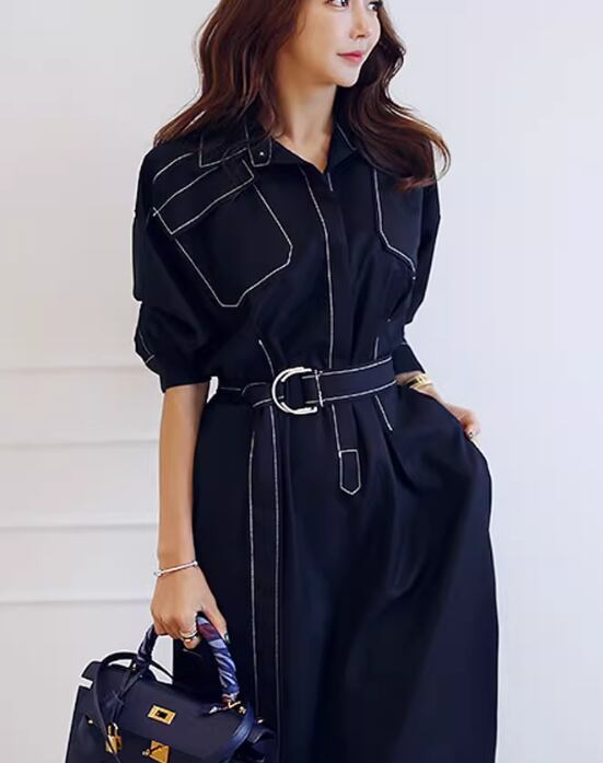 レディース ワンピース ロング Vネック 襟付き タイト スリム ストレート 切り替え ウエストマーク ウエストリボン スリット コンサバ デニム かわいい 大人可愛い きれいめ シンプル 上品 かっこいい レトロ エキゾチック クール モード系 都会的 ラグジュアリー 無地 春 秋 韓国 オルチャン コーデ 楽ちん 体型カバー 美脚 脚長 普段使い 着回し モテ 清楚 トレンド インスタ映え S M L XL ブルー ベージュ