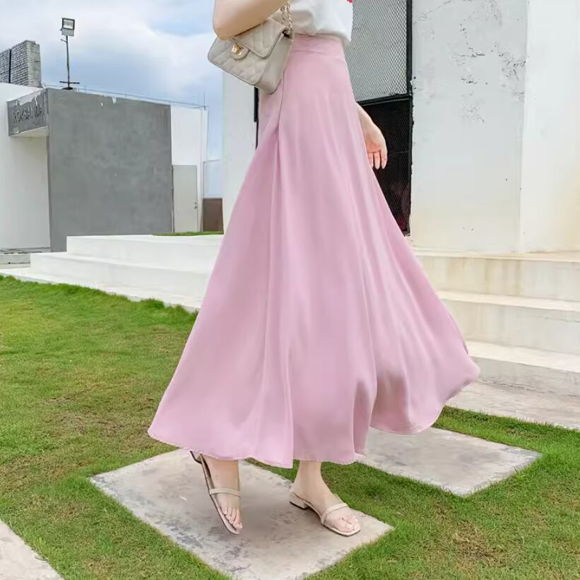 春の風を感じるハイウエストシフォンロングスカート