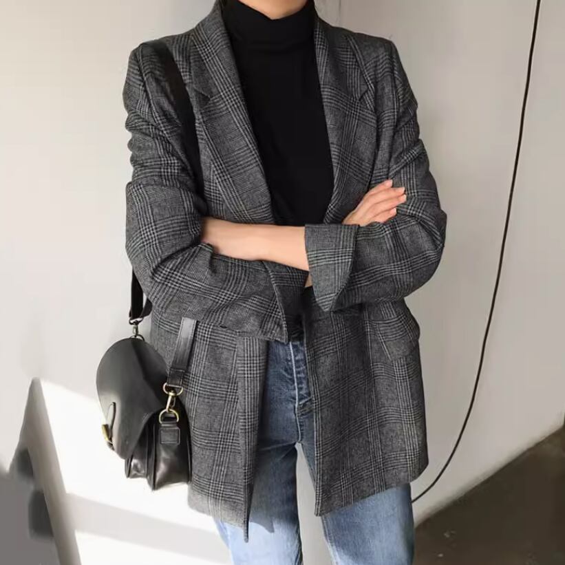 レディース ジャケット スーツ 上着 羽織 前開き 長袖 Vネック 襟付き ワイド ポケット ボタン かわいい 大人可愛い きれいめ シンプル カジュアル 上品 おしゃれ かっこいい レトロ こなれ感 ラフ 個性的 クール モード系 エレガント モダン 主役級 存在感 とろみ感 抜け感 ラブリー キュート 都会的 ベーシック アクティブ ナチュラル チェック 春 秋 冬 お出かけ 女子会 休日 カフェ 重ね着 コーデ 体型カバー 普段使い 着回し ロールアップ モテ 定番 ゆったり ゆる ブラウン グレー