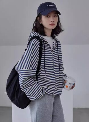 レディース トップス パーカー ショート 長袖 袖あり 襟なし フード ファスナー ポケット 前開き 薄手 かわいい 大人可愛い シンプル カジュアル おしゃれ ラフ メンズライク ボーイッシュ スポーティー ストライプ 柄 春 秋 女性用 通勤 デート お出かけ アウトドア キャンプ 旅行 ジム 公園 女子会 休日 ガーデン ショッピング ライブ フェス 重ね着 コーデ 楽ちん 普段使い 着回し S M L XL 青 ブルー 大人カラー 春カラー 秋カラー