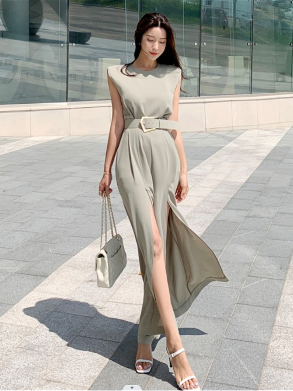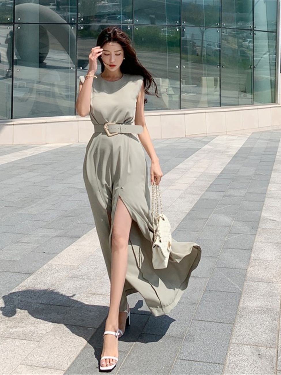 足見せ フロントダブルハイスリット ジャンプスーツ レディース オールインワン つなぎ ワイドレッグ ロング マキシ フレンチスリーブ クルーネック 襟なし Aライン ベルト ウエストマーク スリット ハイウエスト バックファスナー きれいめ シンプル カジュアル おしゃれ こなれ感 個性的 抜け感 都会的 大人っぽい セクシー 女っぽ 無地 夏 女の子 デート イベント リゾート 旅行 休日 バカンス 韓国 オルチャン コーデ 脚長 インスタ映え 小さいサイズ ワンサイズ くすみ ライトグリーン