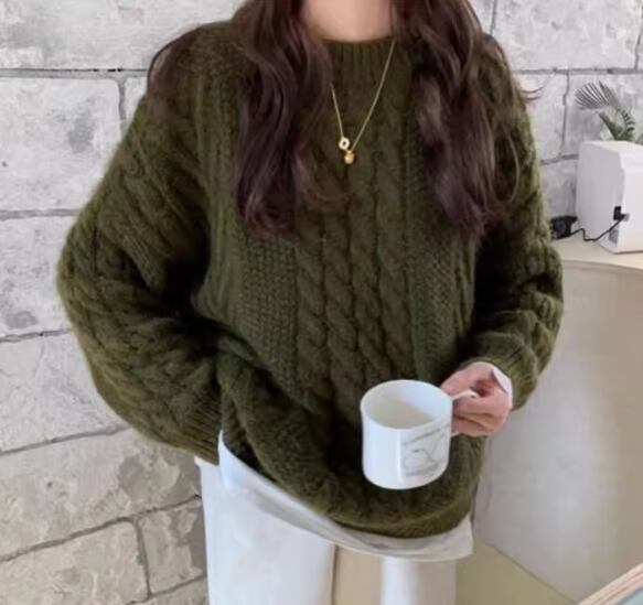 レディース トップス ニット セーター プルオーバー ミドル丈 長袖 ラウンドネック ストレート 厚手 ケーブルニット 大人可愛い きれいめ シンプル カジュアル 上品 おしゃれ レトロ ボーイッシュ ルーズ クール エレガント ナチュラル シック 高級感 優しい 穏やか 柔らかい 秋 冬 デート お出かけ 暖かい 普段使い 着回し S M L XL ゆったり オフホワイト ベージュ カーキ ピンク パープル