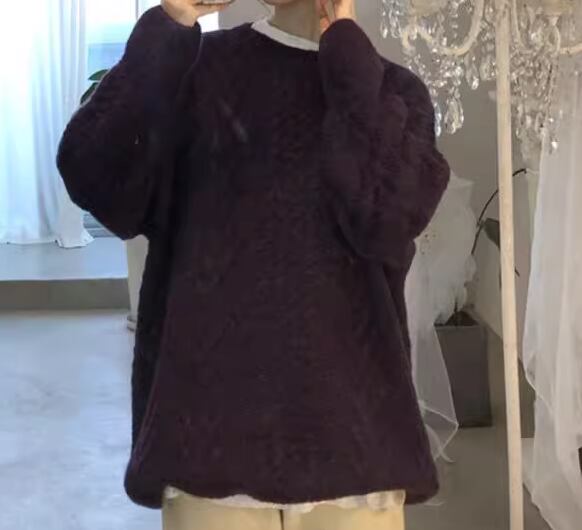 シックなカラーとゆるだぼなオーバーサイズが魅力的な長袖のニットセーター。