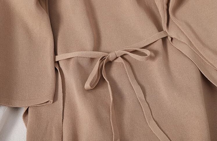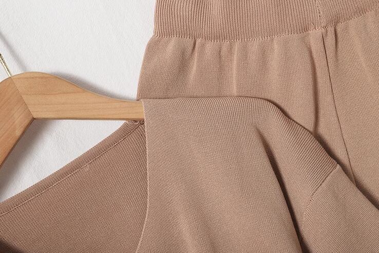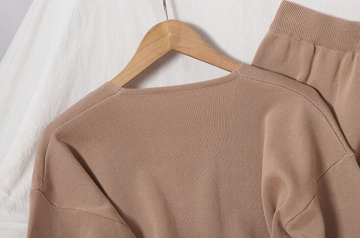 シックな秋カラーが魅力的な大人可愛いニット素材のセットアップ。