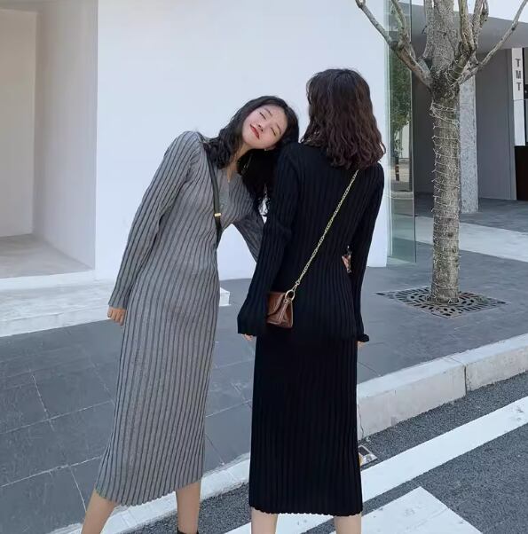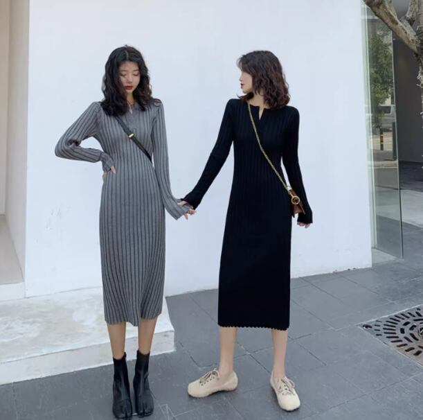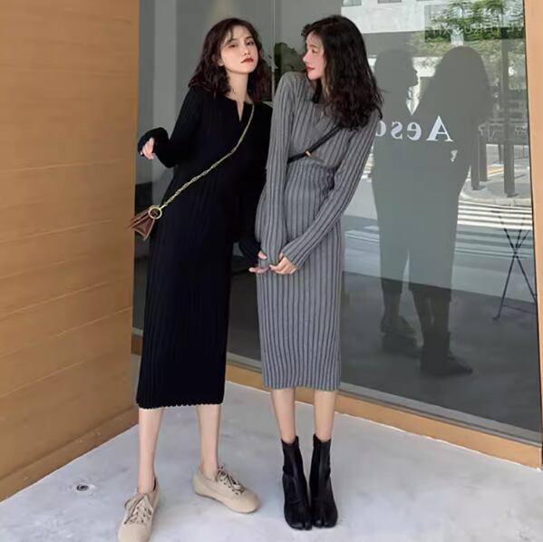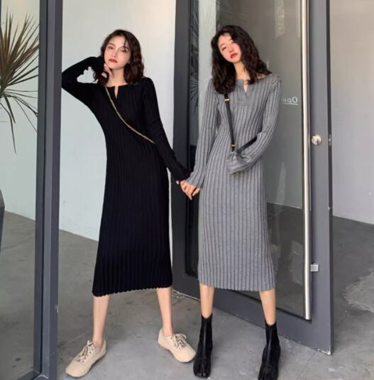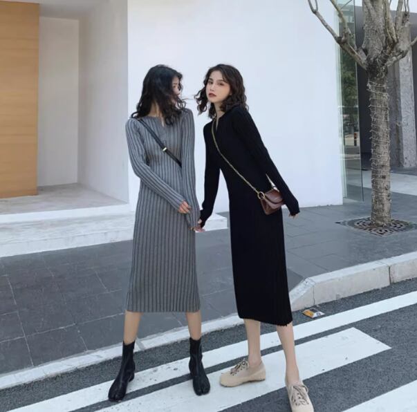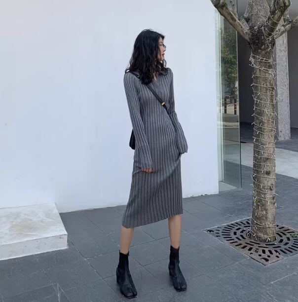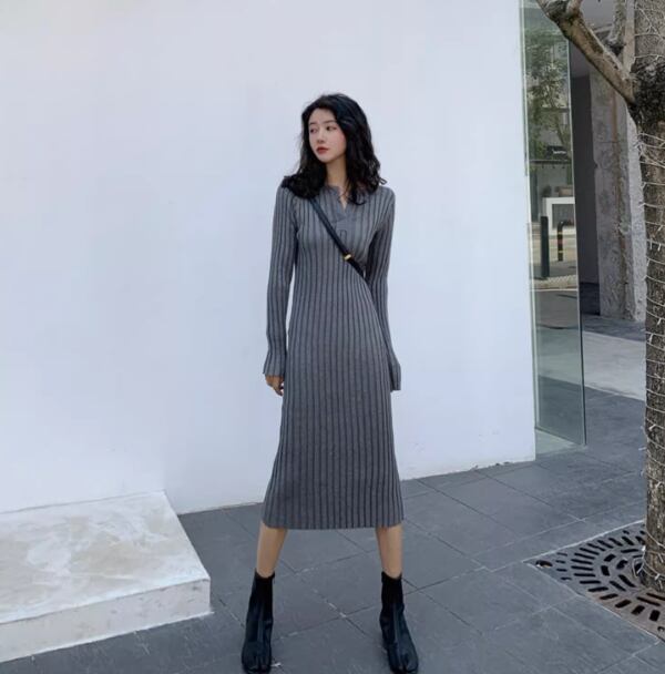 レディース ワンピース ニット セーター ドレス 膝下 ミモレ 長袖 ラウンドネック キーネック タイト スリム 細身 フェミニン ハイウエスト 中厚手 ニット リブニット きれいめ シンプル カジュアル 上品 おしゃれ クール エレガント モダン 主役級 存在感 都会的 無地 秋 冬 クリスマス バレンタイン ママ OL 学生 デート お出かけ リゾート 旅行 レストラン ホテル ショッピング 合コン コンパ カフェ 楽ちん 普段使い 着回し インスタ映え S M L XL ブラック グレー