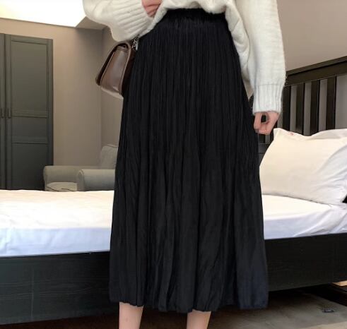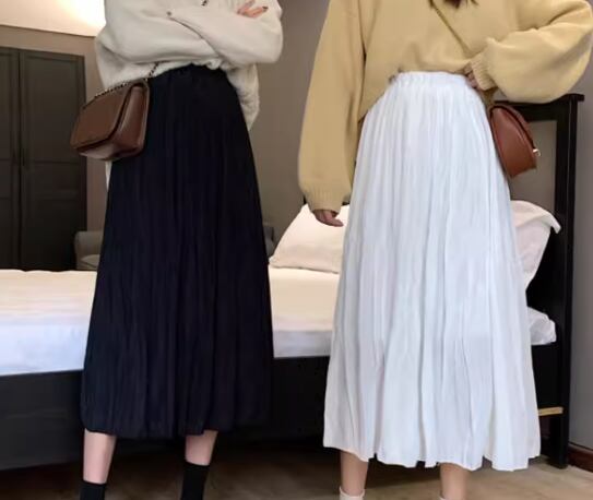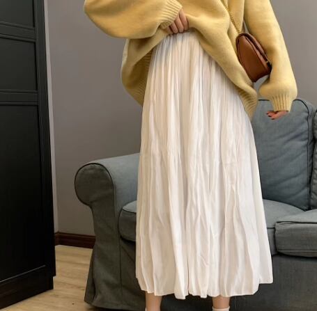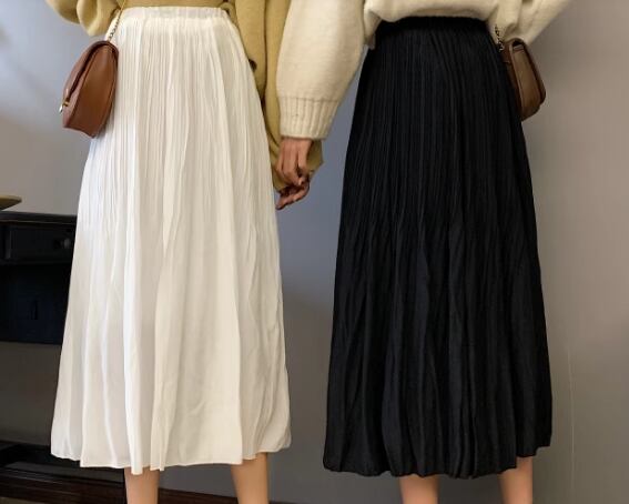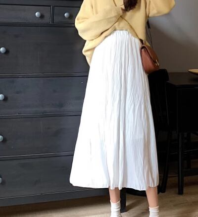 レディース スカート 膝下 ミモレ ロング Aライン プリーツ ハイウエスト ウエストゴム 大人可愛い きれいめ シンプル カジュアル 上品 レトロ ガーリー 学生風 ナチュラル シック 無地 春 夏 秋 冬 デート お出かけ 楽ちん 脚長 普段使い 着回し 清楚 トレンド 流行 S M L XL ホワイト ブラック