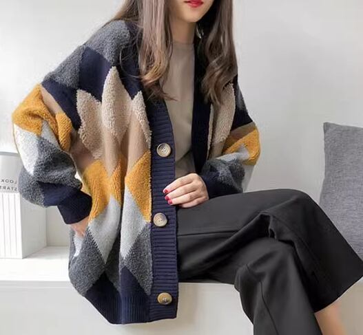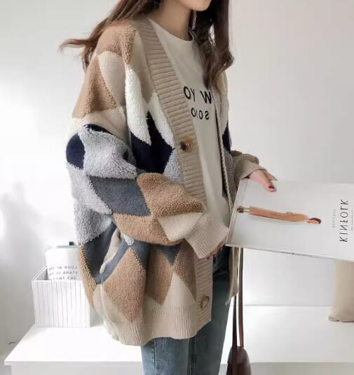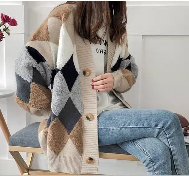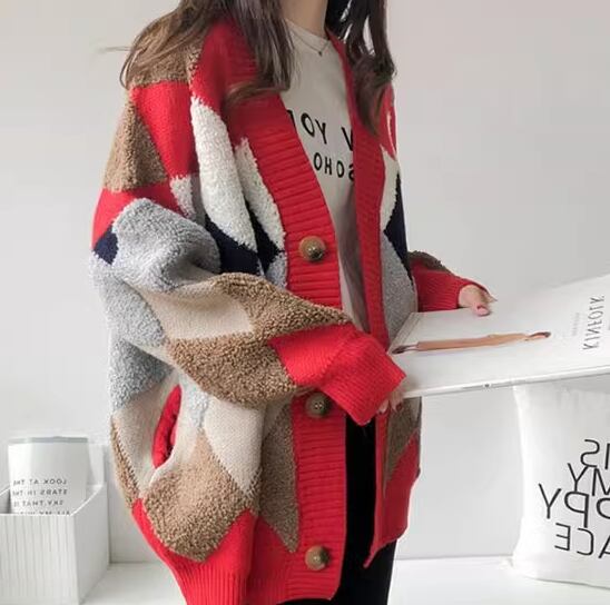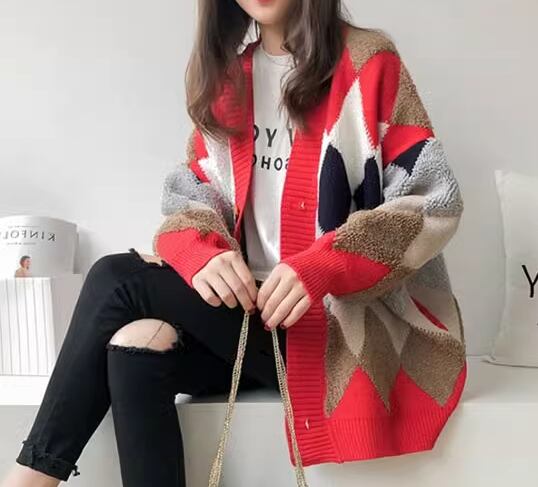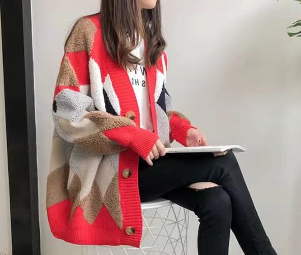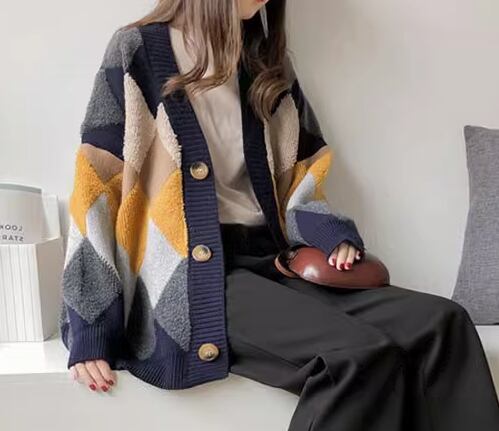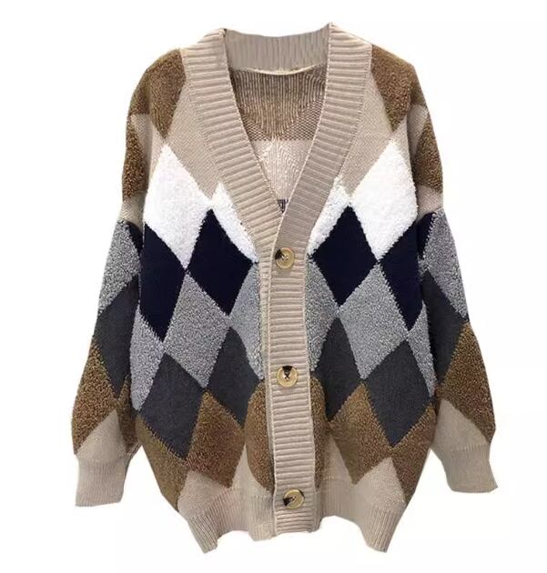 レディース トップス ニット カーディガン 上着 ウール 羽織 ミドル丈 長袖 Vネック ストレート ポケット 前開き ボタン 厚手 大人可愛い きれいめ カジュアル 上品 おしゃれ かっこいい レトロ こなれ感 ラフ メンズライク ボーイッシュ ルーズ クール エレガント 存在感 ナチュラル チェック ダイヤ アーガイル 秋 冬 デート お出かけ 重ね着 暖かい 普段使い 着回し レイヤード トレンド 流行 ゆったり ゆる フリーサイズ 大きめ オーバーサイズ カーキ レッド ネイビー