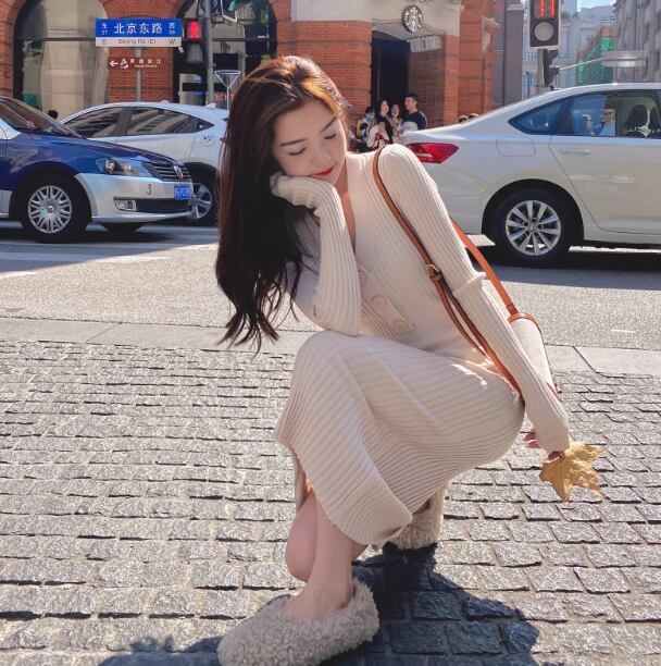 レディース ワンピース ニット セーター 膝下 ミモレ 長袖 Vネック タイト 細身 ハイウエスト リブ 中厚手 ストレッチ 伸縮性 大人可愛い シンプル カジュアル 上品 おしゃれ こなれ感 ガーリー ルーズ モダン 主役級 存在感 抜け感 ナチュラル 無地 秋 冬 母の日 クリスマス バレンタイン リゾート 旅行 レストラン 女子会 休日 バカンス 合コン コンパ 楽ちん 普段使い 着回し トレンド インスタ映え フリーサイズ ブラック ベージュ アプリコット