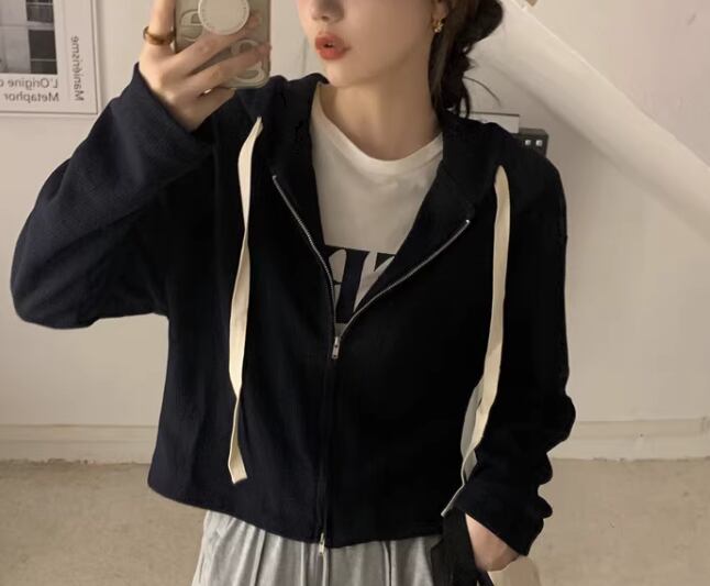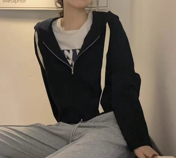 レディース トップス パーカー スウェット ミドル丈 長袖 ファスナー 前開き フード 大人可愛い きれいめ シンプル カジュアル 上品 おしゃれ かっこいい レトロ ラフ メンズライク ボーイッシュ スポーティー ルーズ クール ナチュラル ハンサム シック 高級感 スタイリッシュ 無地 春 秋 デート お出かけ 普段使い 着回し ゆったり フリーサイズ ブラック