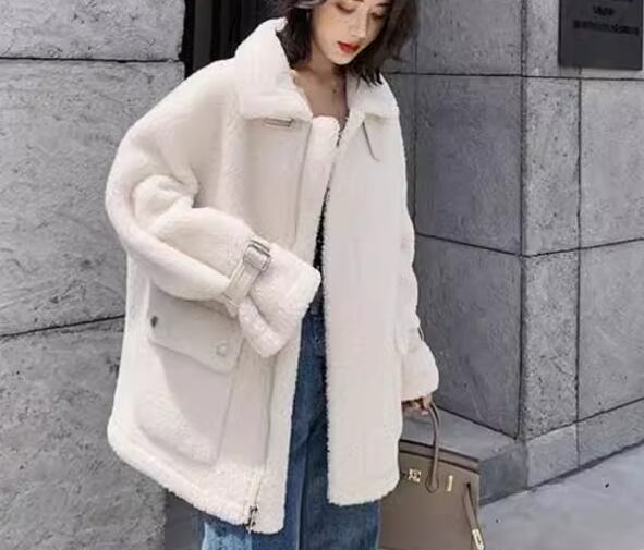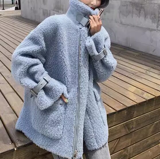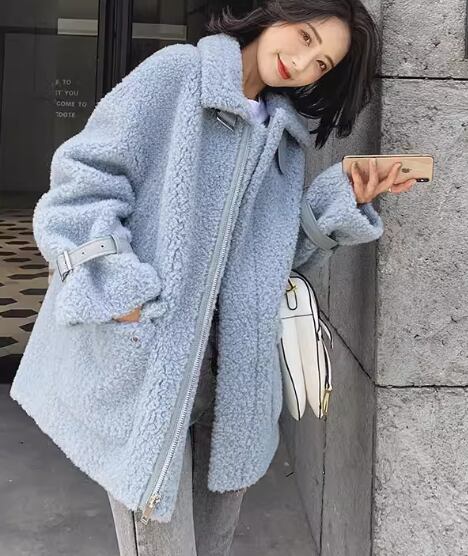 レディース コート アウター 上着 ウール ムートンコート ミドル丈 長袖 襟付き ファスナー ポケット 厚手 かわいい 大人可愛い きれいめ シンプル カジュアル おしゃれ ルーズ エレガント 存在感 キュート ラグジュアリー ナチュラル シック 高級感 華やか 無地 秋 冬 デート お出かけ 韓国 暖かい 防寒 普段使い 着回し トレンド 流行 S M L ゆったり ゆる 大きめ オフホワイト ライトブルー
