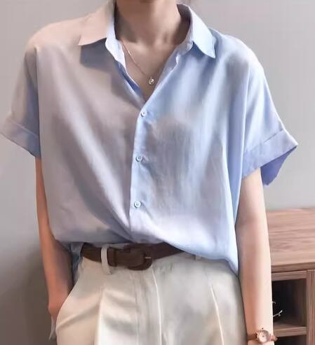 レディース トップス シャツ ミドル丈 半袖 襟付き ポロカラー ドレープ 前開き ボタン 薄手 リネン 大人可愛い きれいめ シンプル カジュアル 上品 おしゃれ かっこいい レトロ ボーイッシュ ルーズ クール エレガント ナチュラル 知的 清潔感 爽やか ハンサム シック オフィスカジュアル スタイリッシュ 涼しげ 無地 夏 オフィス ビジネス OL 通勤 デート お出かけ 普段使い 着回し M L ゆったり ホワイト グレー カーキ ピンク ライトブルー