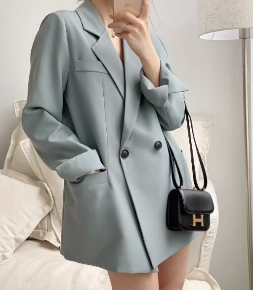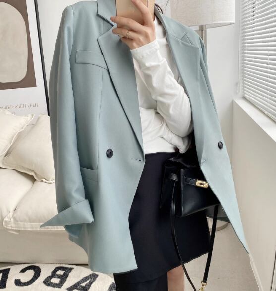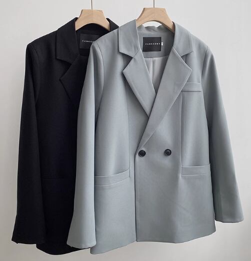 レディース ジャケット スーツ アウター 上着 ミドル丈 長袖 襟付き スーツカラー ドレープ ポケット 前開き ボタン 大人可愛い きれいめ シンプル カジュアル 上品 おしゃれ かっこいい レトロ こなれ感 ボーイッシュ ルーズ クール エレガント クラシカル ナチュラル 知的 清潔感 ハンサム シック 高級感 オフィスカジュアル スタイリッシュ 無地 春 秋 オフィス ビジネス OL 通勤 韓国 普段使い 着回し S M ゆったり ブラック グレー