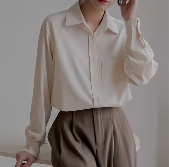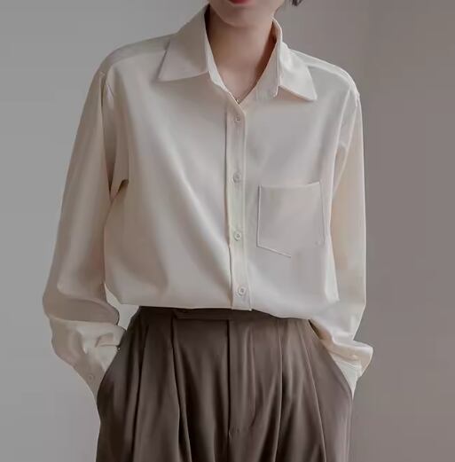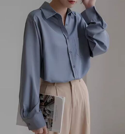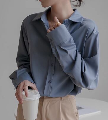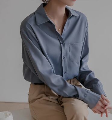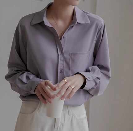 レディース トップス シャツ ミドル丈 長袖 襟付き ポロカラー ストレート ドレープ シフォン ポケット 前開き ボタン 大人可愛い きれいめ シンプル カジュアル 上品 おしゃれ かっこいい レトロ こなれ感 ボーイッシュ ルーズ クール エレガント ナチュラル 知的 清潔感 ハンサム シック 高級感 オフィスカジュアル スタイリッシュ 無地 春 秋 オフィス ビジネス OL 通勤 普段使い 着回し S M L XL ゆったり ゆる 大きめ ブルー アプリコット 大人カラー パープル