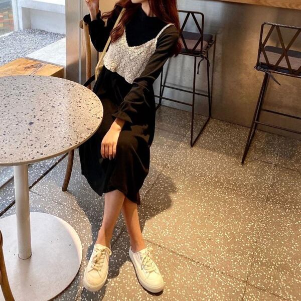 ブラック(ワンピ)+ホワイト(キャミソール)