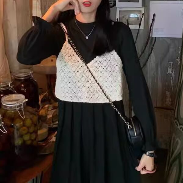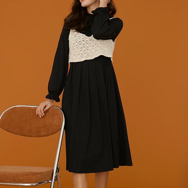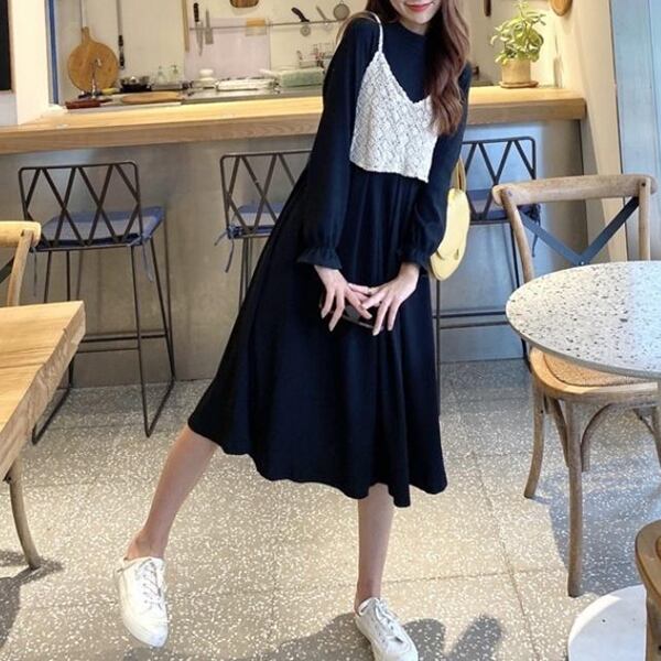 レディース セットアップ ワンピース&キャミソール2点セット ロングワンピース かぎ針編み キャミソール 長袖 ミモレ Aライン ハイネック セミフレア 綿 コットン カジュアル 大人カジュアル モード系 シック きれいめ 清楚 キュート エレガント おしゃれ 無地 20代 30代 デート お出かけ 普段使い 韓国 トレンド かわいい 大人 大人女子 大人可愛い 休日 オフ 通学 パーティ 仕事 通勤