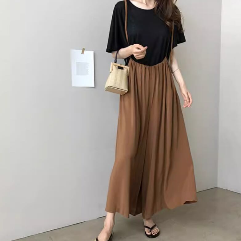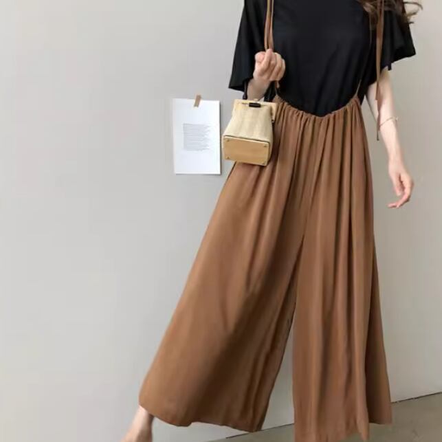 サスペンダージャンプスーツ レディース パンツ ボトムス サロペット ロングパンツ ワイドパンツ ロング 9分丈 ワイド 裾ワイド ハイウエスト ウエストゴム 伸縮性 薄手 かわいい 大人可愛い きれいめ シンプル カジュアル 上品 おしゃれ かっこいい レトロ こなれ感 ラフ ルーズ 個性的 主役級 存在感 とろみ感 抜け感 ラブリー キュート ベーシック アクティブ ナチュラル 無地 夏 デート お出かけ リゾート 休日 バカンス ショッピング お花見 カフェ コーデ 普段使い モテ ゆったり ゆる