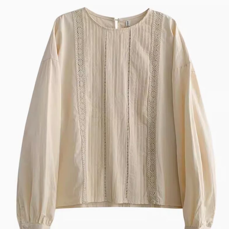 レディース トップス シャツ ブラウス 長袖 ラウンドネック 襟なし ノーカラー ワイド レース 薄手 かわいい 大人可愛い きれいめ シンプル カジュアル 上品 おしゃれ かっこいい レトロ こなれ感 ラフ ルーズ 個性的 エレガント 主役級 存在感 とろみ感 抜け感 ラブリー キュート ベーシック ロマンティック ナチュラル 春 秋 デート お出かけ リゾート レストラン 女子会 休日 ガーデン ショッピング お花見 カフェ コーデ 楽ちん 普段使い 着回し モテ 清楚 M L ゆる アプリコット